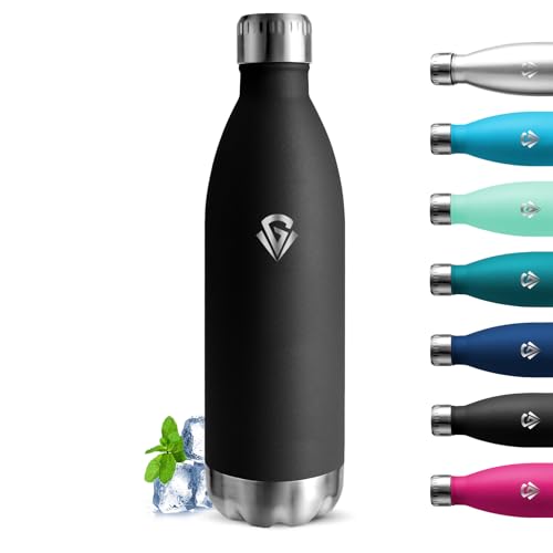 Grsta Gourde- 1l- Gourde Isotherme, Sans BPA, Gourde Inox, 24h Froid & 12h Chaud, Bouteille Isotherme, Anti Fuite, Double Vide, Bouteille d'eau pour Bureau, Voyage, Camping, Sport, Randonnée, Noir