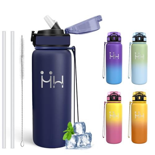 Mujigaga Gourde- 750ml- Gourde Isotherme, sans BPA, Bouteille Isotherme, Anti Fuite, Gourdes avec Paille, Facile à Transporter, Double Vide, Bouteille d'eau pour École, Voyage, Camping, Nager, Yoga