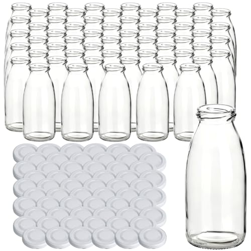 gouveo lot de 60 bouteilles de jus 250 ml avec bouchon à vis blanc - bouteille en verre 0,25 l avec bouchon TO43 - bouteille vide pour jus, smoothie, limonade (SF250W)