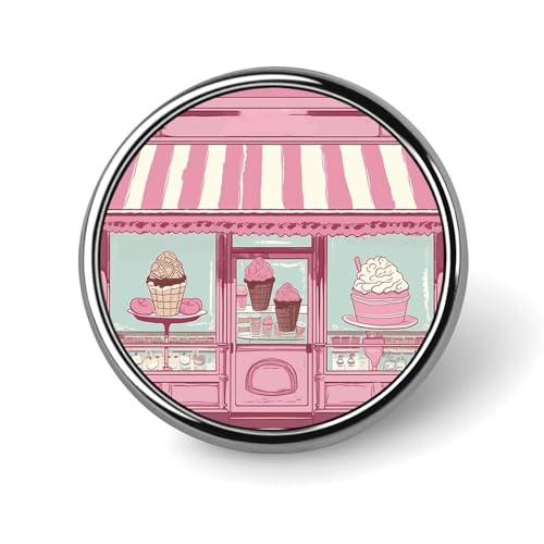 Broche ronde rose en alliage d'aluminium, insigne de boutique de glaces, légère et tendance, accessoire de mode pour hommes et femmes.