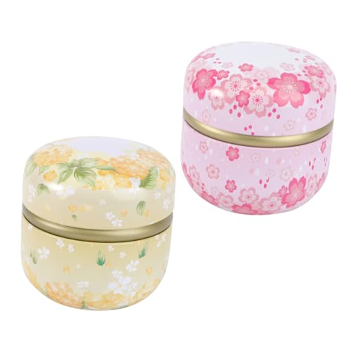 VINTORKY Lot De 2 Pots à Thé Ronds 50g Petit Récipient à Thé En Fer Blanc Métallique Portable Pour Maison Boutique Fête Emballage Alimentaire Polyvalent Couleur Rose Jaune