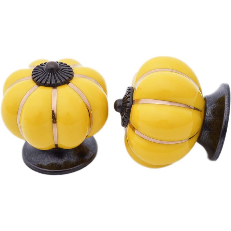 5Pcs Bouton de Meuble Céramique Poignée de Placard Vintage avec Vis Pour Armoire Tiroirs Commode - Jaune