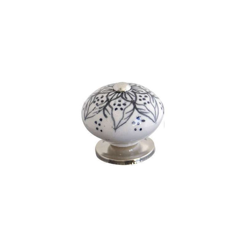 Bouton de meuble en céramique Poignée de porte Fleur 25 blanc gris
