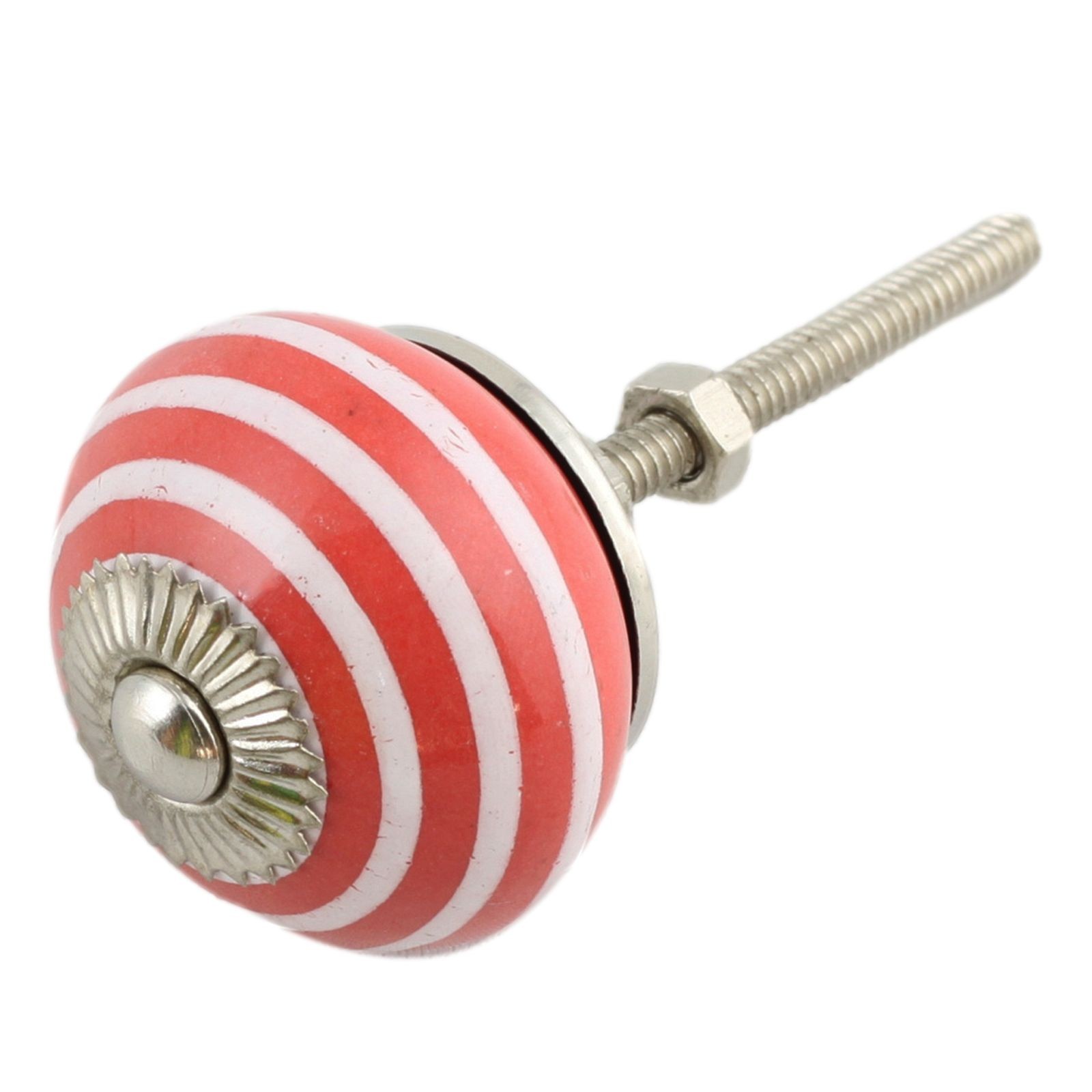 Bouton de meuble en céramique Poignée de porte Rayures rouge-blanc argent