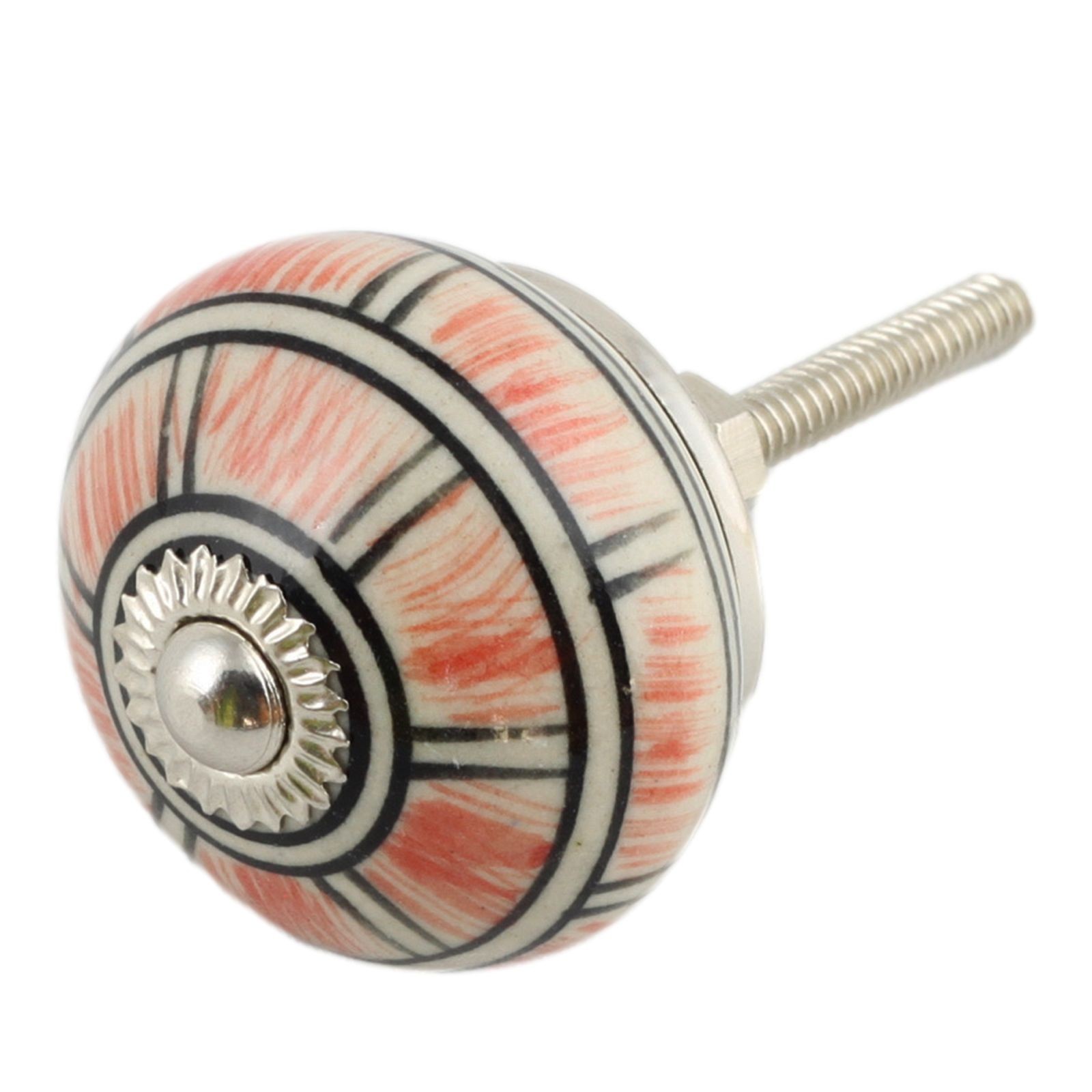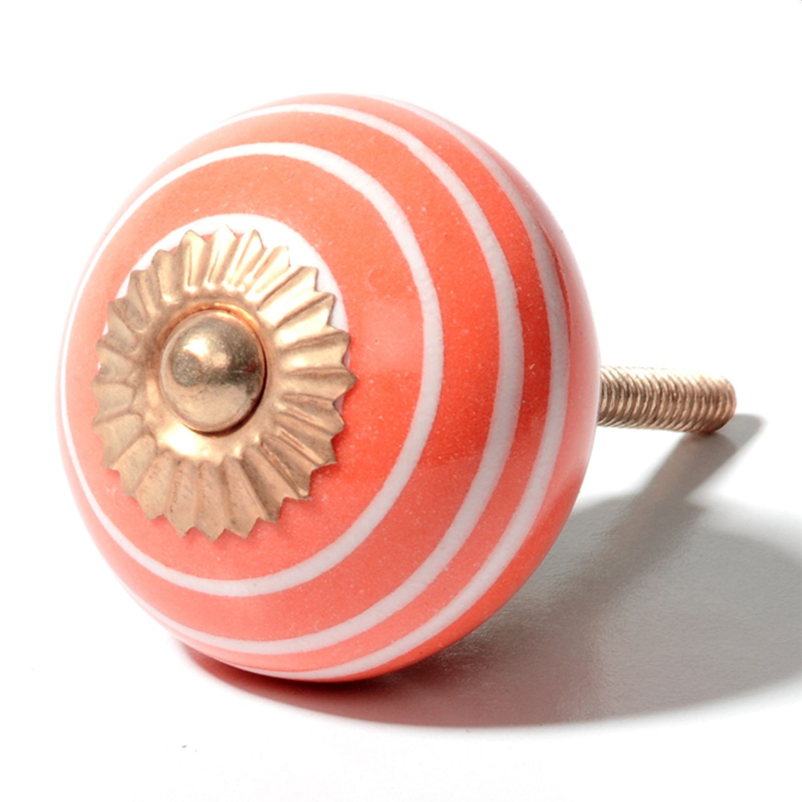 Bouton de meuble en céramique Poignée de porte Rayures orange-blanc