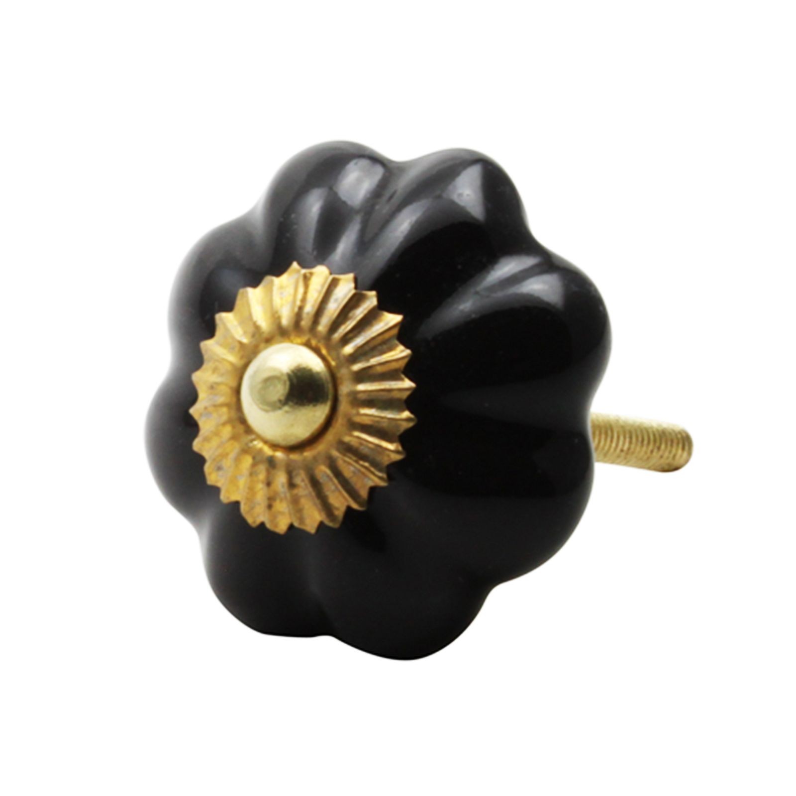 Bouton de Meuble Céramique Noir Or ø40mm - Design Moderne