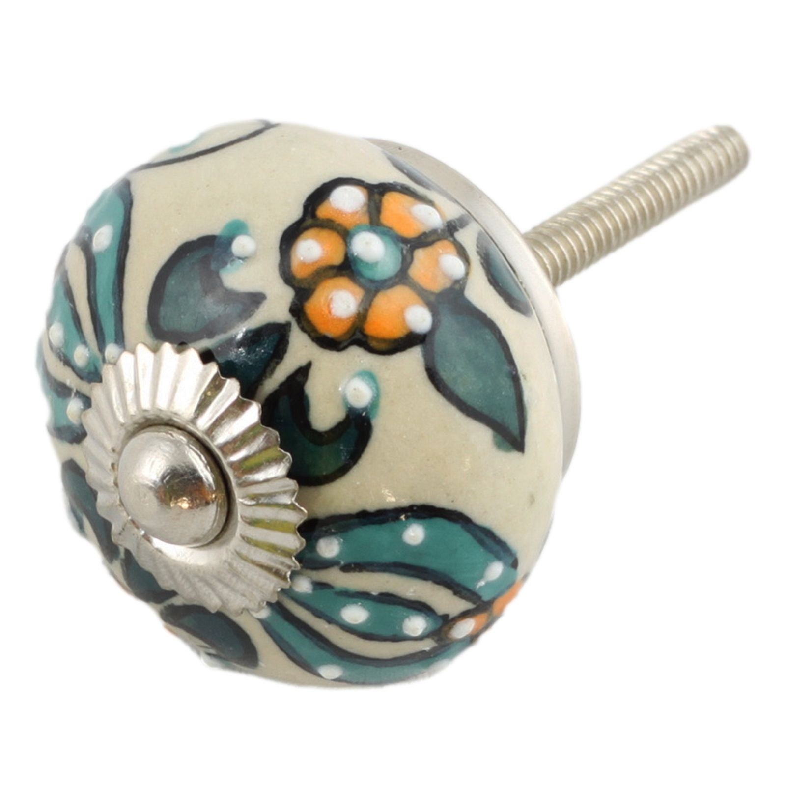 Bouton de meuble en céramique Poignée de porte Rosace vert-blanc 01