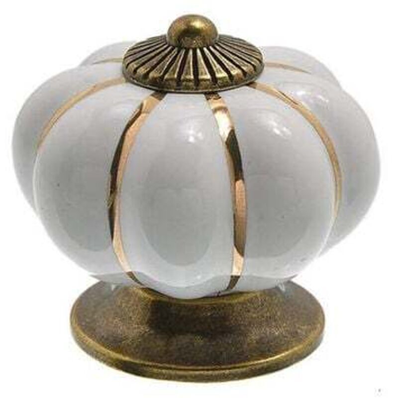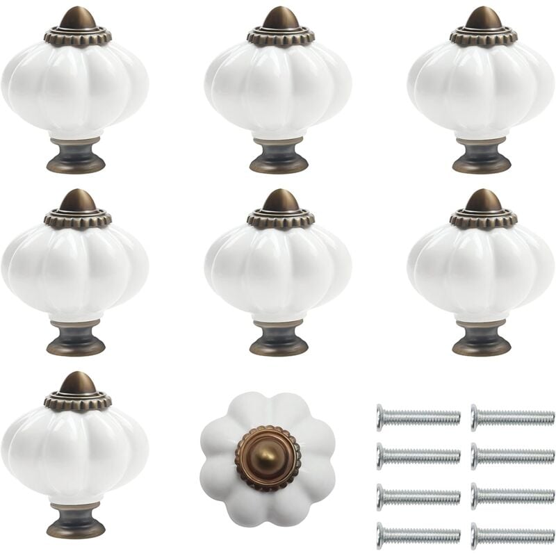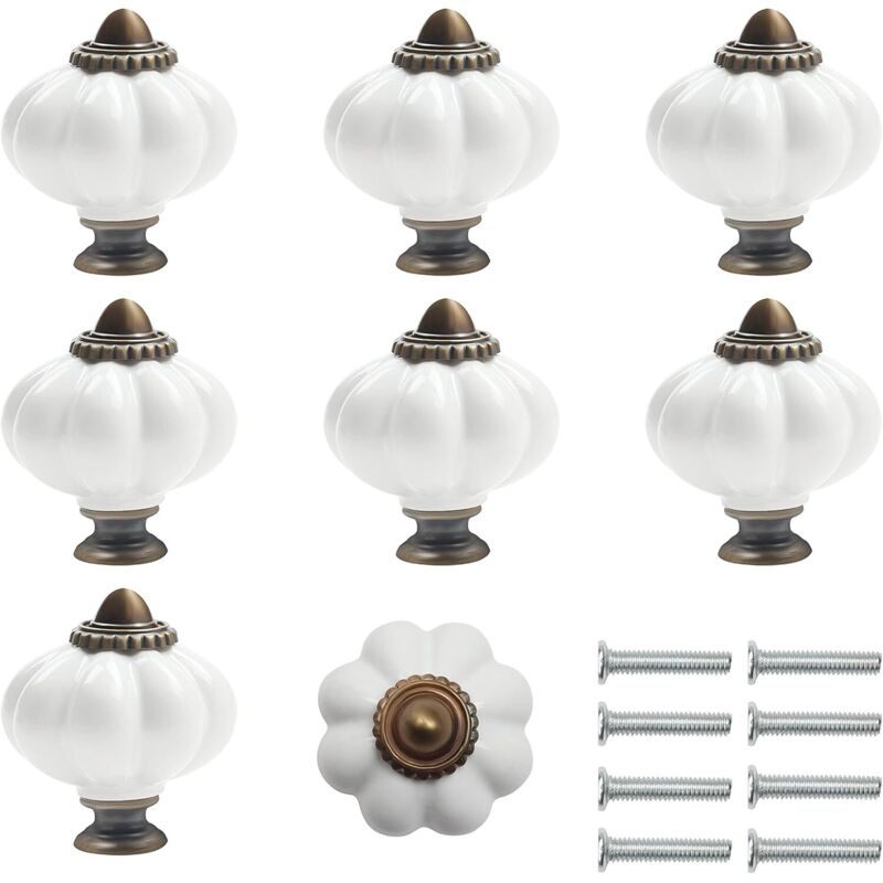 Bouton Ceramique Meuble Blanc et Bronze avec Vis en Forme de Citrouille (Lot de 8) - 3 x 3.5 cm - Bouton de Meuble Rond Vintage - Pour Maison,