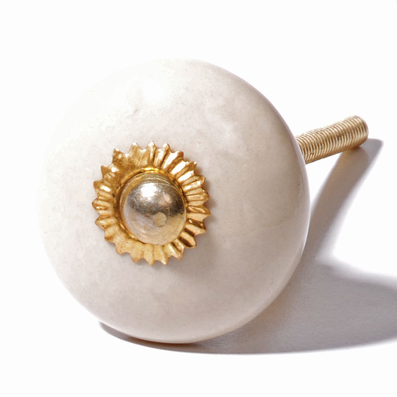 Bouton Ceramique Meuble Blanc et Or avec Vis en Forme de Citrouille (Lot de 16) - 3,6 x 3,8 cm - Bouton de Meuble Rond Vintage - Pour Maison, Bureau,