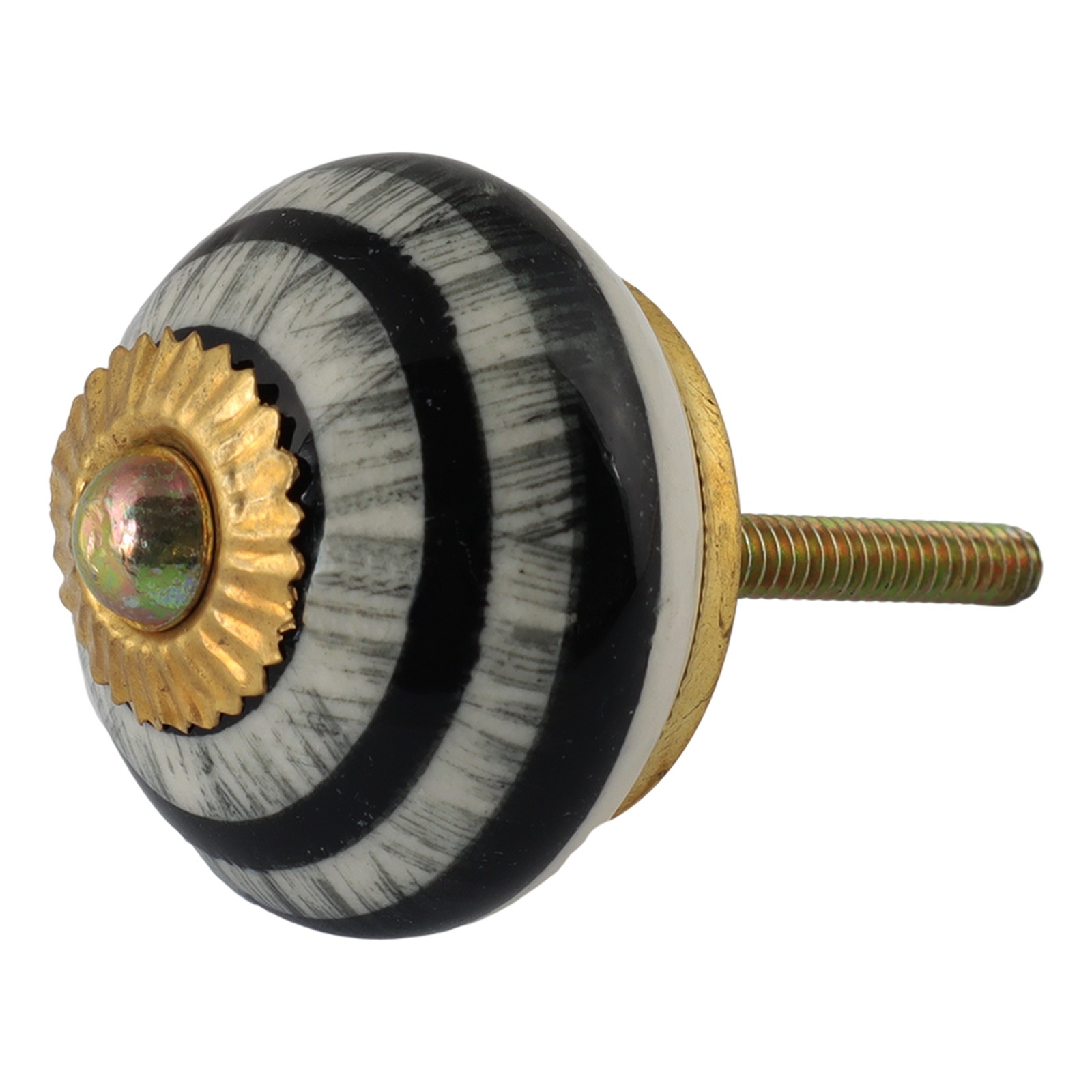 Bouton de meuble en céramique Poignée de porte rosace blanc vert rayures argent