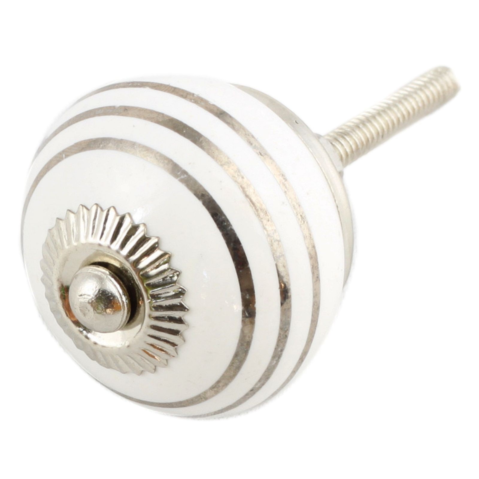 Bouton de meuble en céramique Poignée de porte Rayures blanc-argent