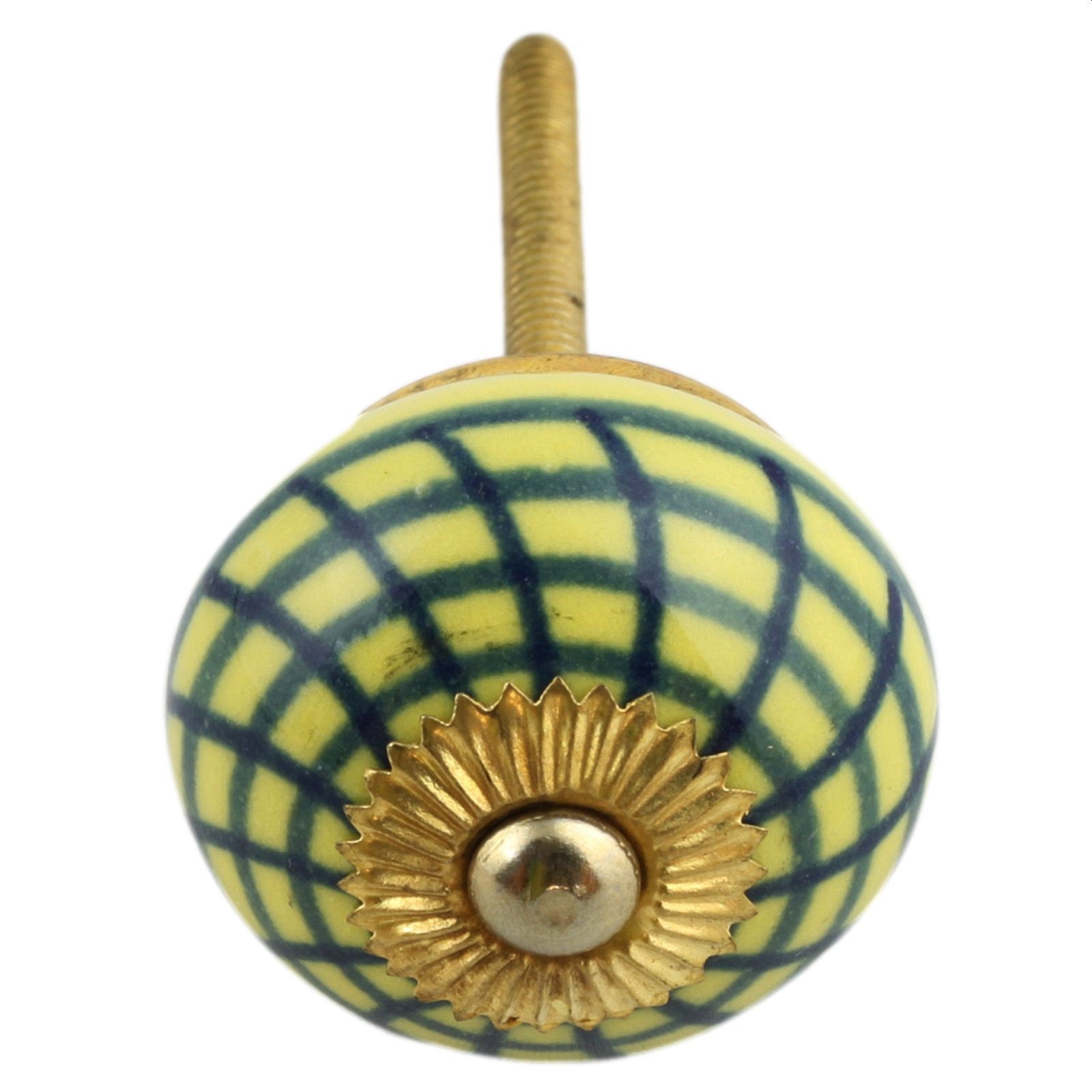 Bouton de meuble en céramique Poignée de porte À carreaux bleu-jaune