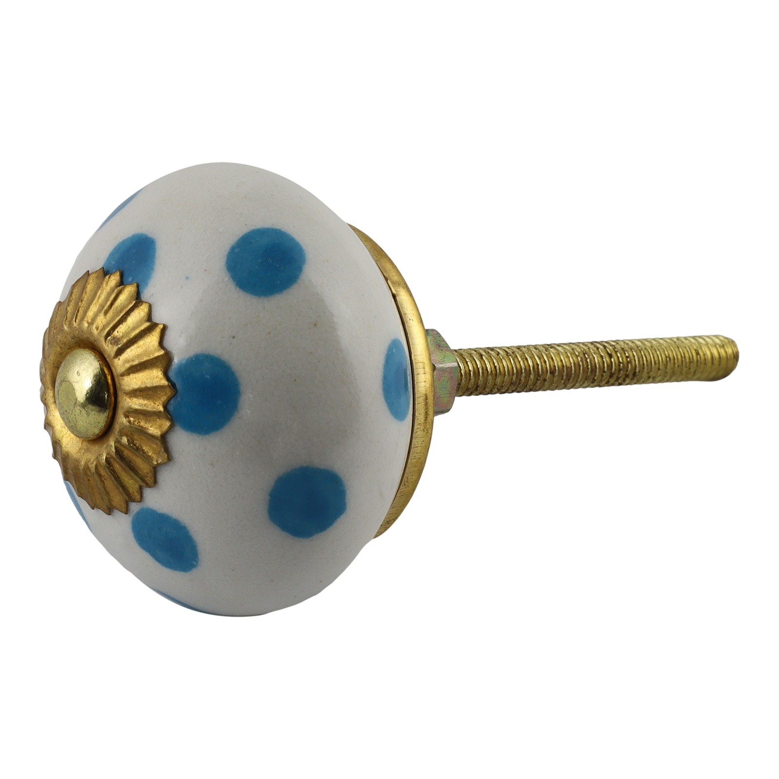 Bouton de meuble en céramique Poignée de porte Pois blanc-bleu