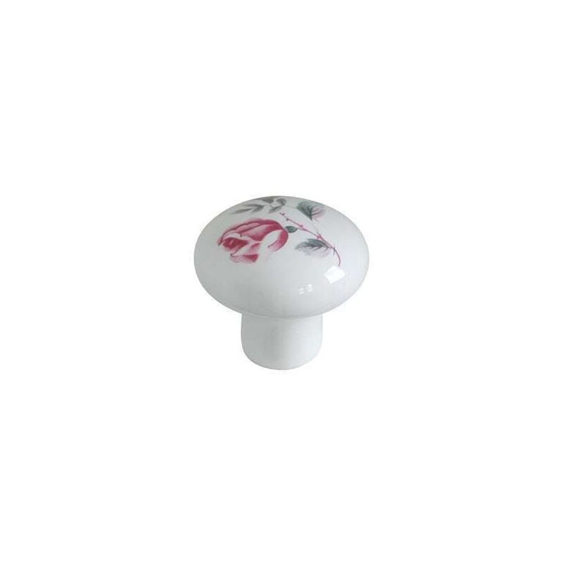Ateliers 28 - Bouton Meuble Céramique Rose Blanc Ø35mm - Déco Classique