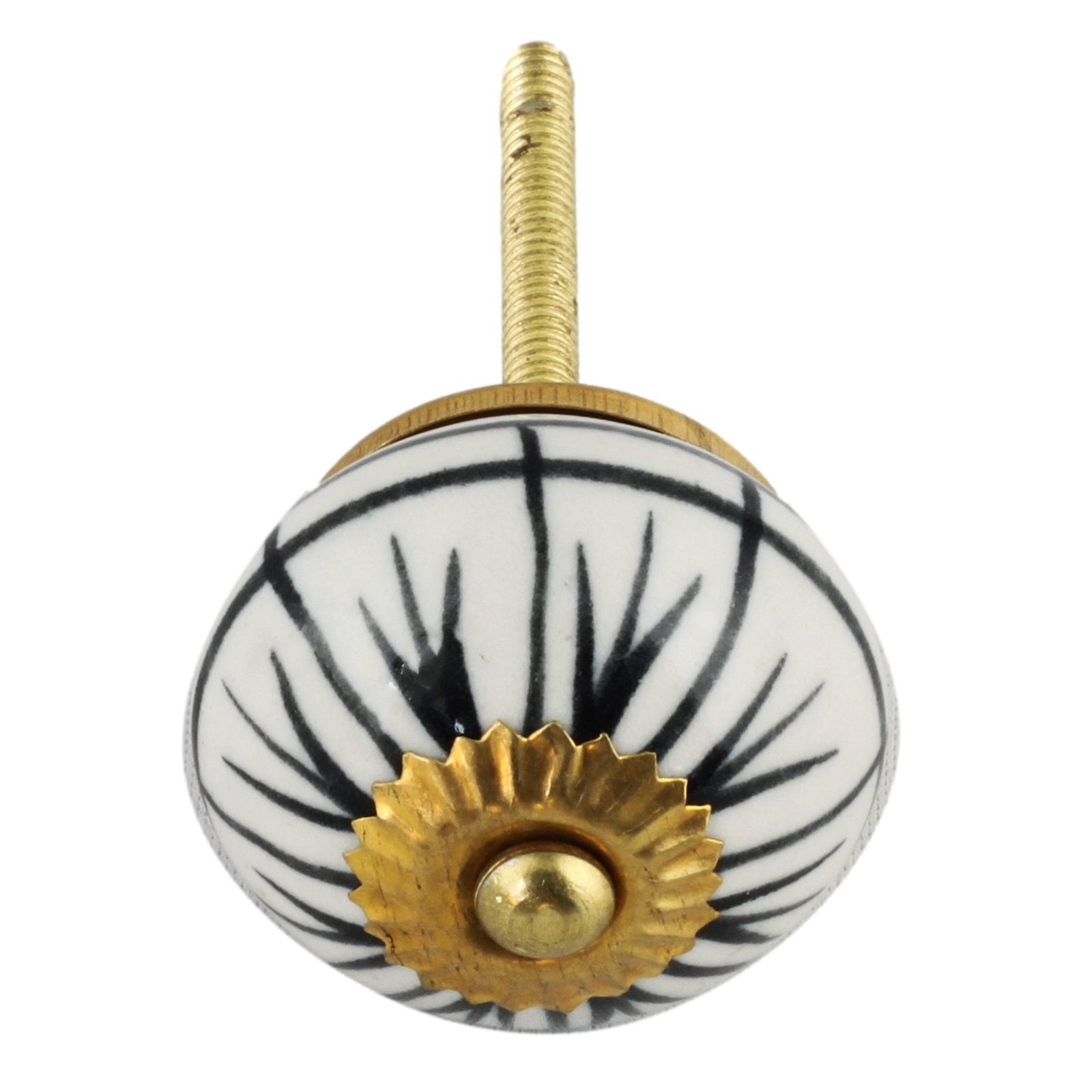 Bouton de meuble en céramique Poignée de porte Rayures lignes blanc noir