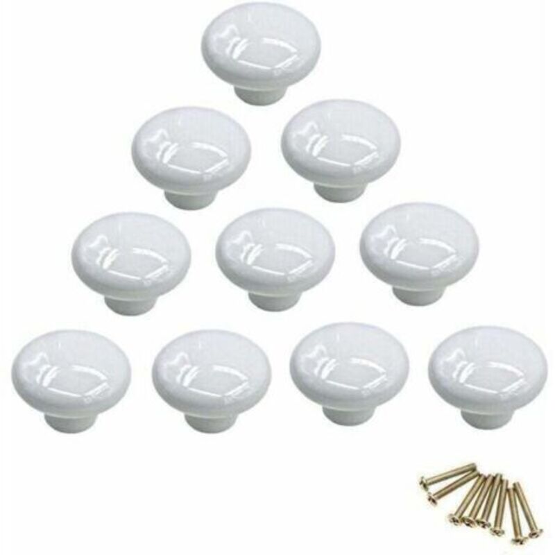 Bouton de meuble en céramique blanc – Lot de 10 boutons 32mm – Vis de 25mm incluses – Décoration vintage pour tiroirs et placards