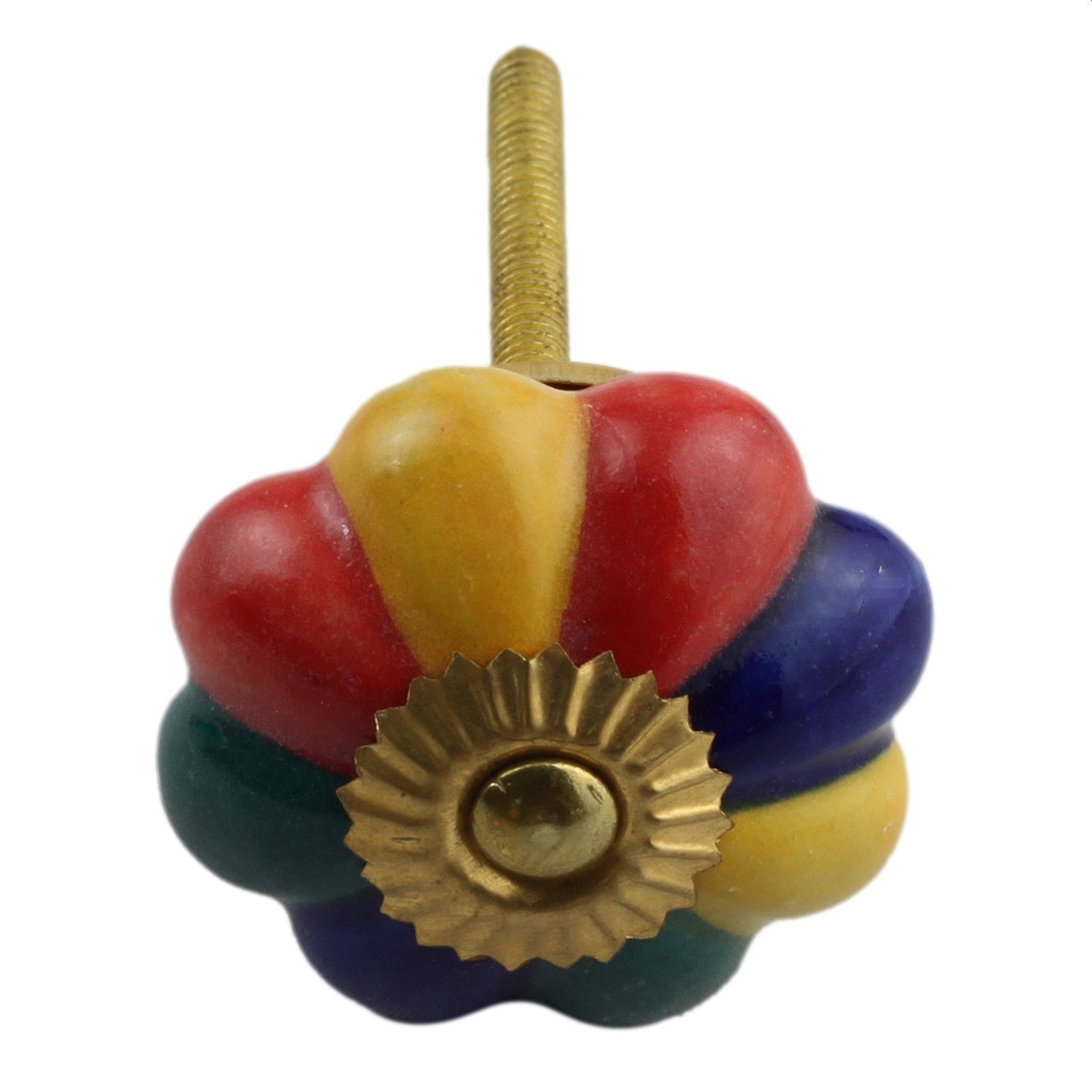 Bouton de meuble en céramique Poignée de porte Fleur 14 rouge-bleu-jaune