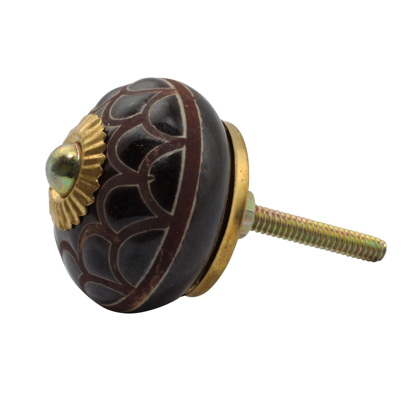 Bouton de meuble en céramique Poignée de porte Fleur 05 brun-jaune