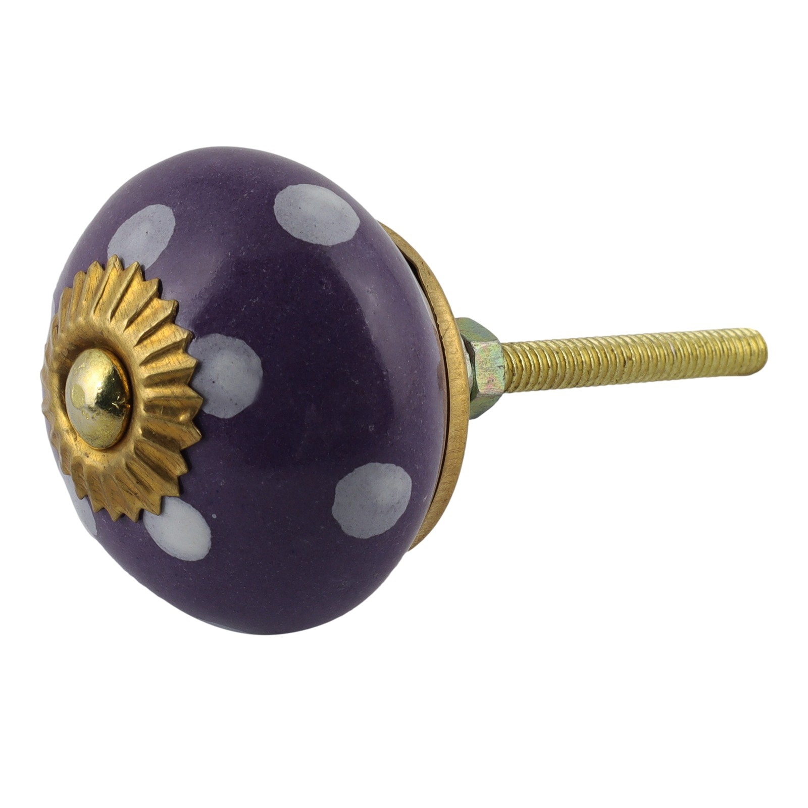 Bouton de meuble en céramique Poignée de porte Points violet-blanc