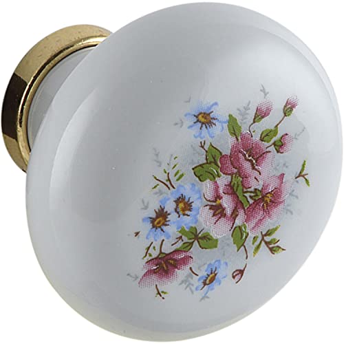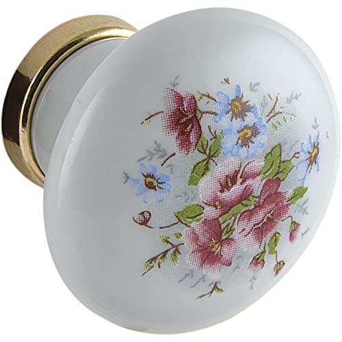 SCHÖRGHOFER & FREHE Bouton de meuble Cary Ø 28 mm – Poignée de meuble avec fleurs – Bouton de porte, porcelaine, laiton poli