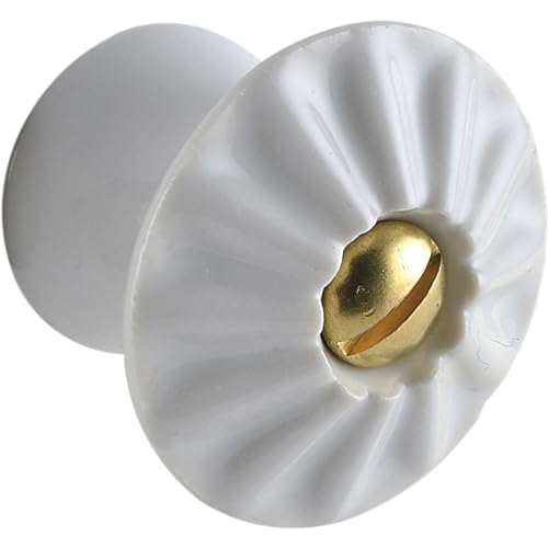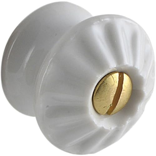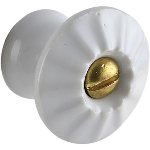 SCHÖRGHOFER & FREHE Bouton de meuble Tempe - Diamètre : 18 mm - Poignée en porcelaine avec vis en laiton - Style maison de campagne - Porcelaine blanc/laiton
