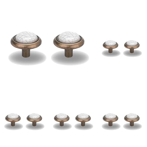 SCHÖRGHOFER & FREHE Ontario Bouton de meuble Ø 29 mm – Poignée en porcelaine pour meubles style maison de campagne – Bouton de porte, porcelaine/zinc moulé sous pression – Blanc/étamé vieilli