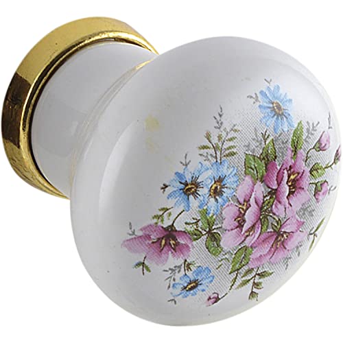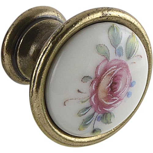 cyclingcolors 2x bouton de tiroir finition laiton porcelaine céramique motif fleur 35 mm meuble vintage antique style porte poignée commode armoire maison avec vis