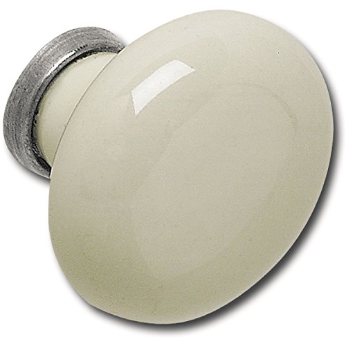 SCHÖRGHOFER & FREHE Bouton de meuble Ontario Ø 34 mm – Poignée en porcelaine pour meuble style maison de campagne – Poignée de porte, porcelaine/zinc moulé sous pression – Ivoire/étamé vieilli