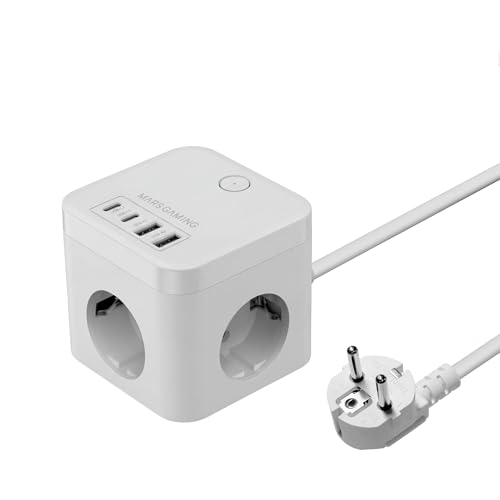 Mars Gaming MD-CUBE35, Powercube Multifonction Compact, 3x Prises SCHUKO + 2x USB-C + 2x USB-A, Charge Rapide PD 35W, Technologie GaN, Câble 1.8m, Bouton ON/OFF et Indicateur LED, 9 Protections, Blanc