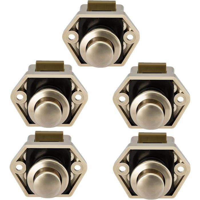 Bouton Poussoir Camping Car - Loquet Porte Meuble Serrure Fermeture Tiroir Placard pour RV Caravane de Moteur 5 pièces (Nickel)