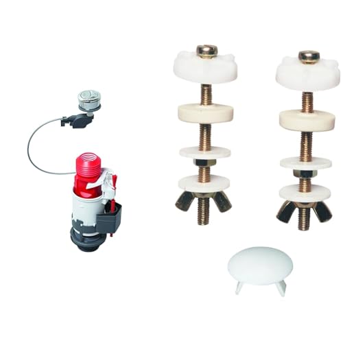 Wirquin 10723580 Mécanisme chasse d'eau wc double chasse avec bouton poussoir à câble MW2, gris & 10724092 Jeu de vis en inox pour réservoir de toilettes M21, blanc