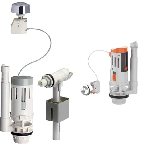 Wirquin 10723580 Mécanisme chasse d'eau wc double chasse avec bouton poussoir à câble MW2, gris & 10723588 Chasse d'eau wc robinet flotteur à alimentation basse Jollyfill, gris