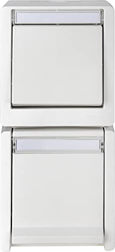OPUS® Resist Interrupteur/bouton poussoir avec prise de courant, modèle vertical universel, couleur blanc pur