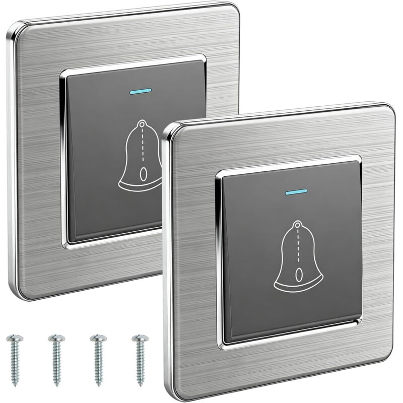 2 pièces Bouton de sonnette, Bouton-poussoir de sonnette de porte, Bouton de sonnette extérieur de 86mmx86mm, Interrupteur de lumière encastré