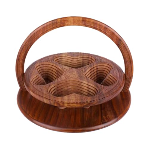 Foldable Fruit Basket - Hand Carved Wooden Candy Container, Decorative Snack Bowl for Home Kitchen Living Room, Elegant Craftsmanship for Bedroom Study Apartment Dorm Office Hotel Restaurant Dining