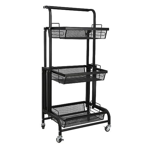HUOLE Fruit Basket Metal Fruit Bowl, Bread Baskets Detachable Fruit Holder, Kitchen Storage Baskets Stand - Design for Fruits Breads Vegetables Snack (30 * 44 * 94.5cm-Trois Couches-Noir)