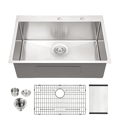 Lordear 30 inch Drop In Kitchen Sink Stainless Steel 16 Gauge Single Bowl Topmount Rectangular Round Corner Kitchen Sinks Overcounter Basin