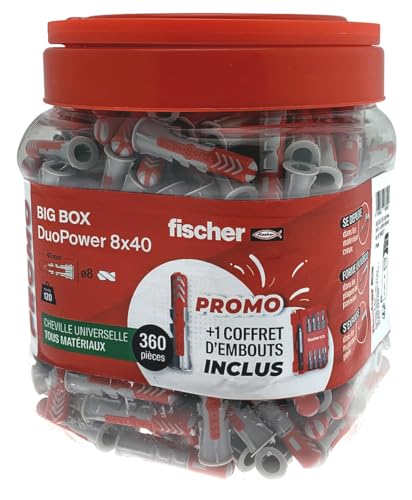 fischer - BigBox de 360 Chevilles Tous matériaux DuoPower 8x40 + 1 Coffret d'embouts Offert