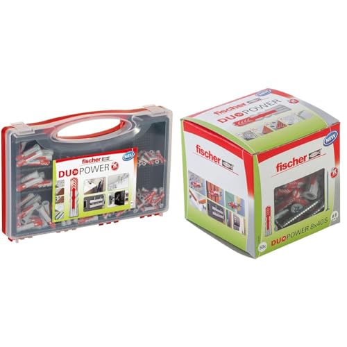 fischer - Cheville bi-matière et Tous matériaux DuoPower/RedBox de 30 Chevilles 5x25 & Cheville bi-matière et Multi-matériaux DUOPOWER 8x40 avec vis/Boîte de 50
