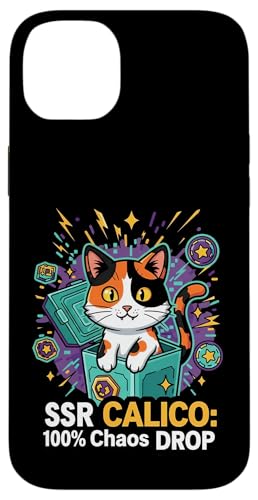 SSR Calico Cat 100% Chaos Drop Gacha Gaming Loot Box Coque pour iPhone 15 Plus