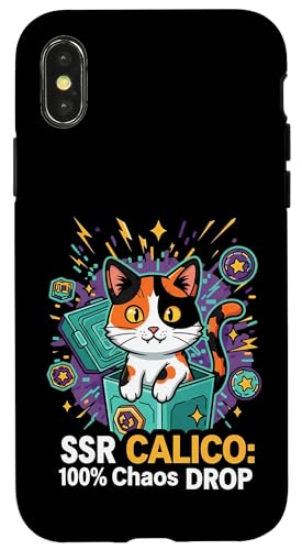 SSR Calico Cat 100% Chaos Drop Gacha Gaming Loot Box Coque pour iPhone XR