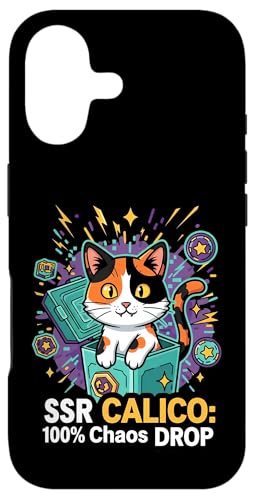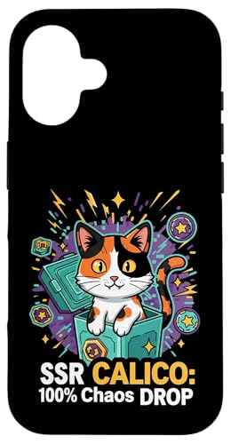 SSR Calico Cat 100% Chaos Drop Gacha Gaming Loot Box Coque pour iPhone 16 Plus