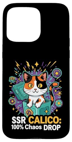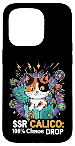 SSR Calico Cat 100% Chaos Drop Gacha Gaming Loot Box Coque pour iPhone 15 Pro