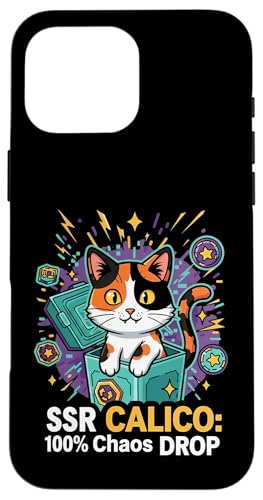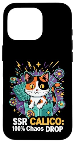 SSR Calico Cat 100% Chaos Drop Gacha Gaming Loot Box Coque pour iPhone 16 Pro