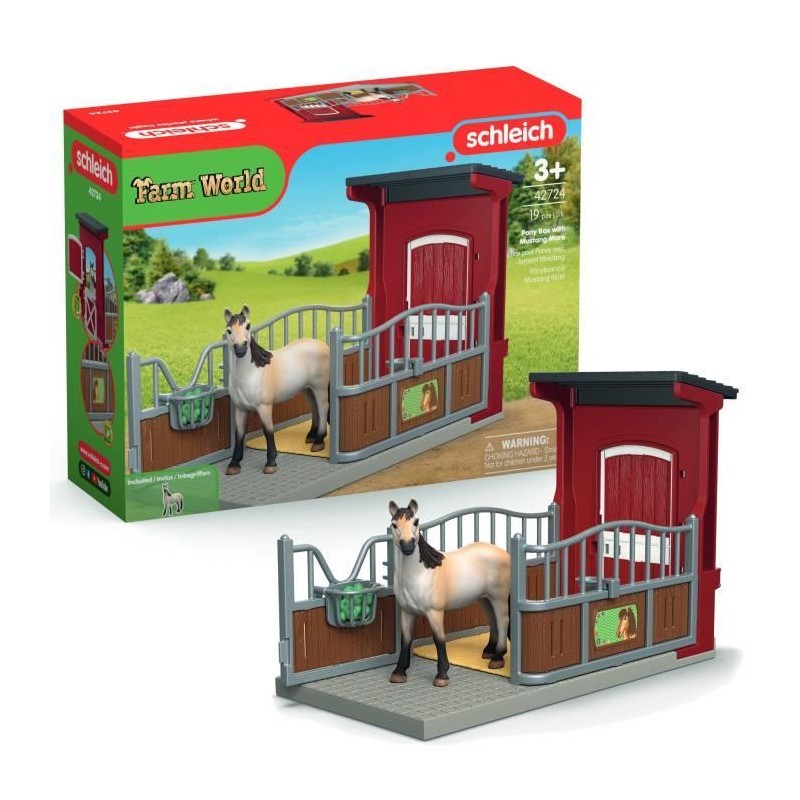 SCHLEICH - Figurine de l'univers Farm World - Box avec Jument Mustang - - SH...