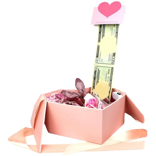 Bouncing Folding Money Box Distributeur d'argent - Porte-surprise créatif pour adolescentes - Pour anniversaire, Saint-Valentin, mariage, fête de vacances - 3,94 x 2,95 x 7,28 cm