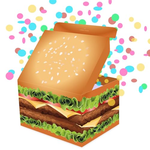 FETTIPOP Boîte Cadeau Explosion Confettis Vide DIY (Thème Burger-XL), Surprise Originale Anniversaire Homme Femme, Party Box Unique pour Toute Occasion, Mariage, Fêtes – 18,5x14x11 cm