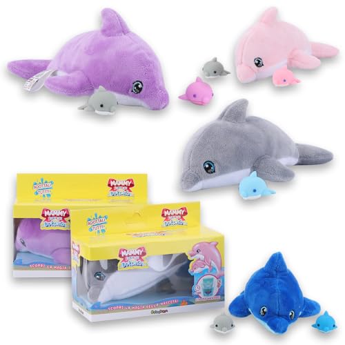 #sbabam Funny Box Mammy Surprise Dolphin, Coffre à Jouets pour Enfants, Peluche Dauphin avec Mini Chiots, 2 Pièces, Marionnettes Animales Douces, Jouet pour Bébé