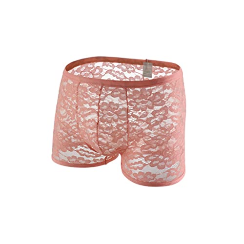 CHOUBAGUAI Sous-vêtements en dentelle pour homme - Lingerie en maille - Culotte bombée - Boxer pour homme - Rose, L
