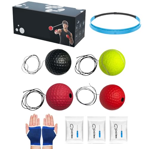 Balle Réflexe de Boxe,React Reflex Ball,Boxing Reflex Ball,Reflex Ball Set,Boxe Balle avec Bandeau,2 React Reflex Ball,2 Bandeaux Ajustables,pour Améliorer Le Temps de Réaction,Coordination Yeux Main